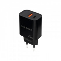 NANOCABLE CARGADOR USB-C/PD+USB-A/QC 20W NEGRO